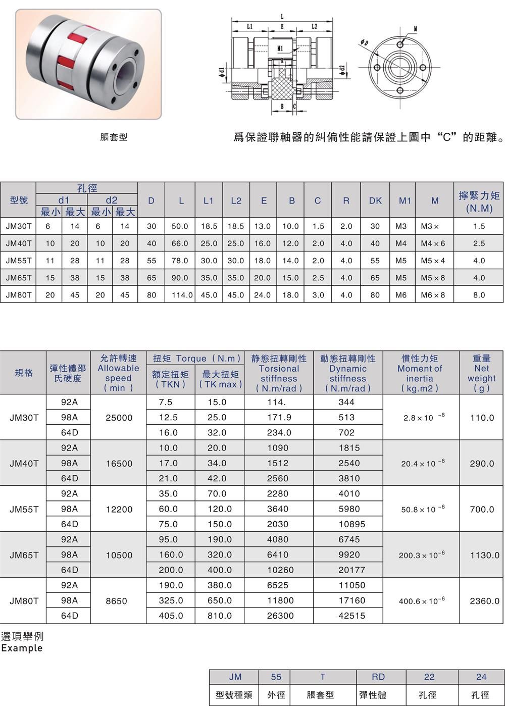 產(chǎn)品名稱(chēng):JM-T 雙節(jié)無(wú)齒隙彈性體聯(lián)軸器